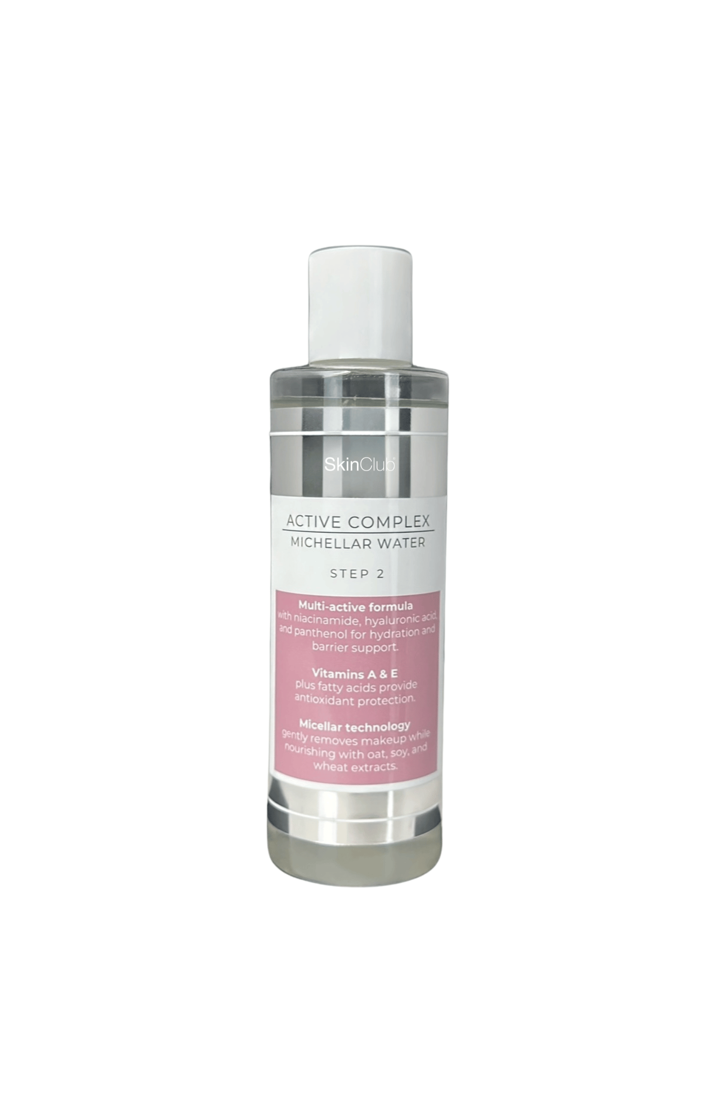 Active Complex™ Micellar Water fra SkinClub Skincare er en luksuriøs micellar water, der skånsomt fjerner makeup, snavs og urenheder, samtidig med at huden tilføres fugt og næring. Formlen er beriget med glycerin og hyaluronsyre for intens hydrering, mens havreekstrakt, niacinamid og panthenol virker beroligende og styrkende. Omega-6 fedtsyrer og castorolie hjælper med at fastholde fugtbalancen, og mælkesyre eksfolierer nænsomt hudens overflade, så den efterlades glat, frisk og forfinet.