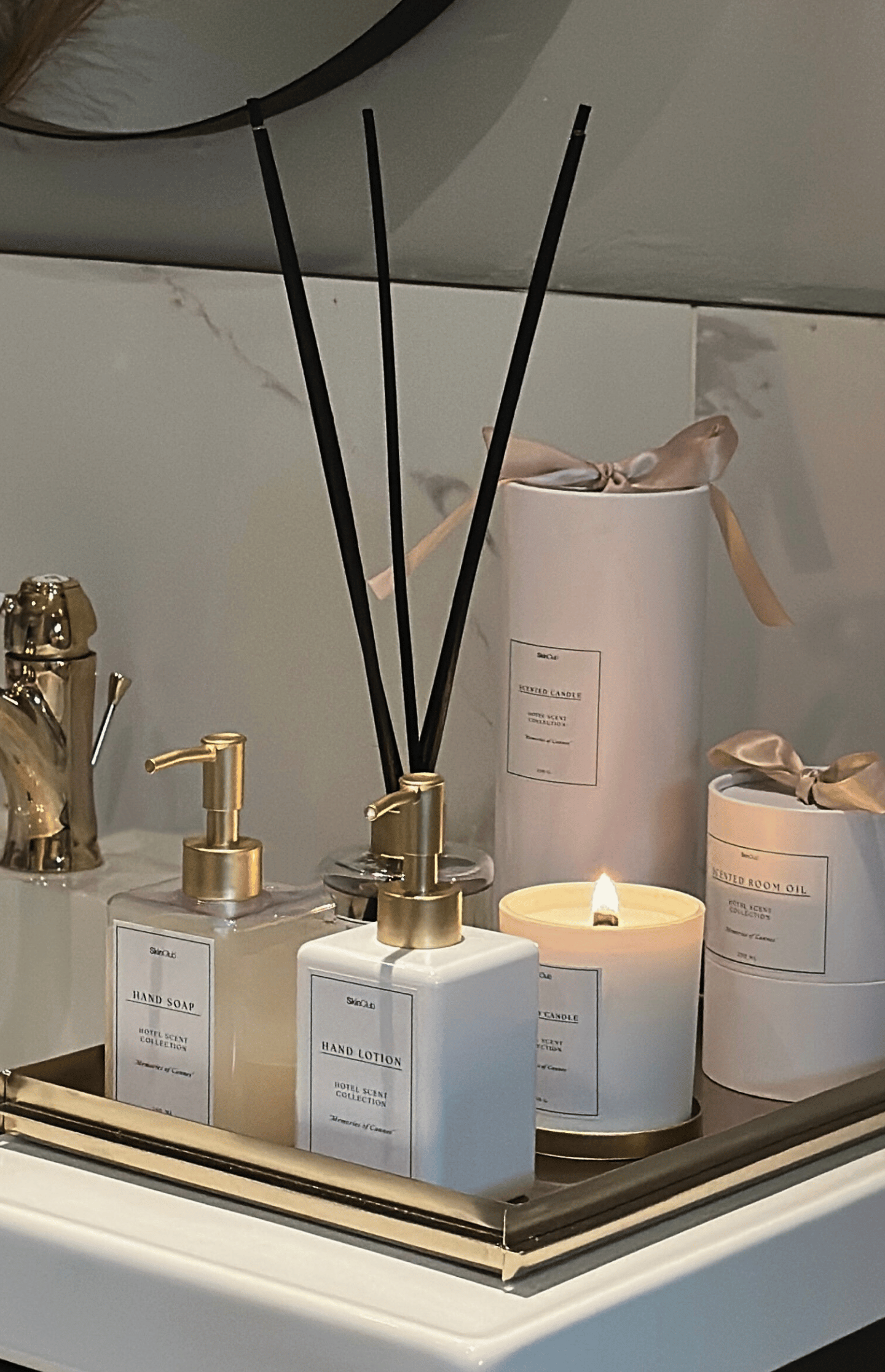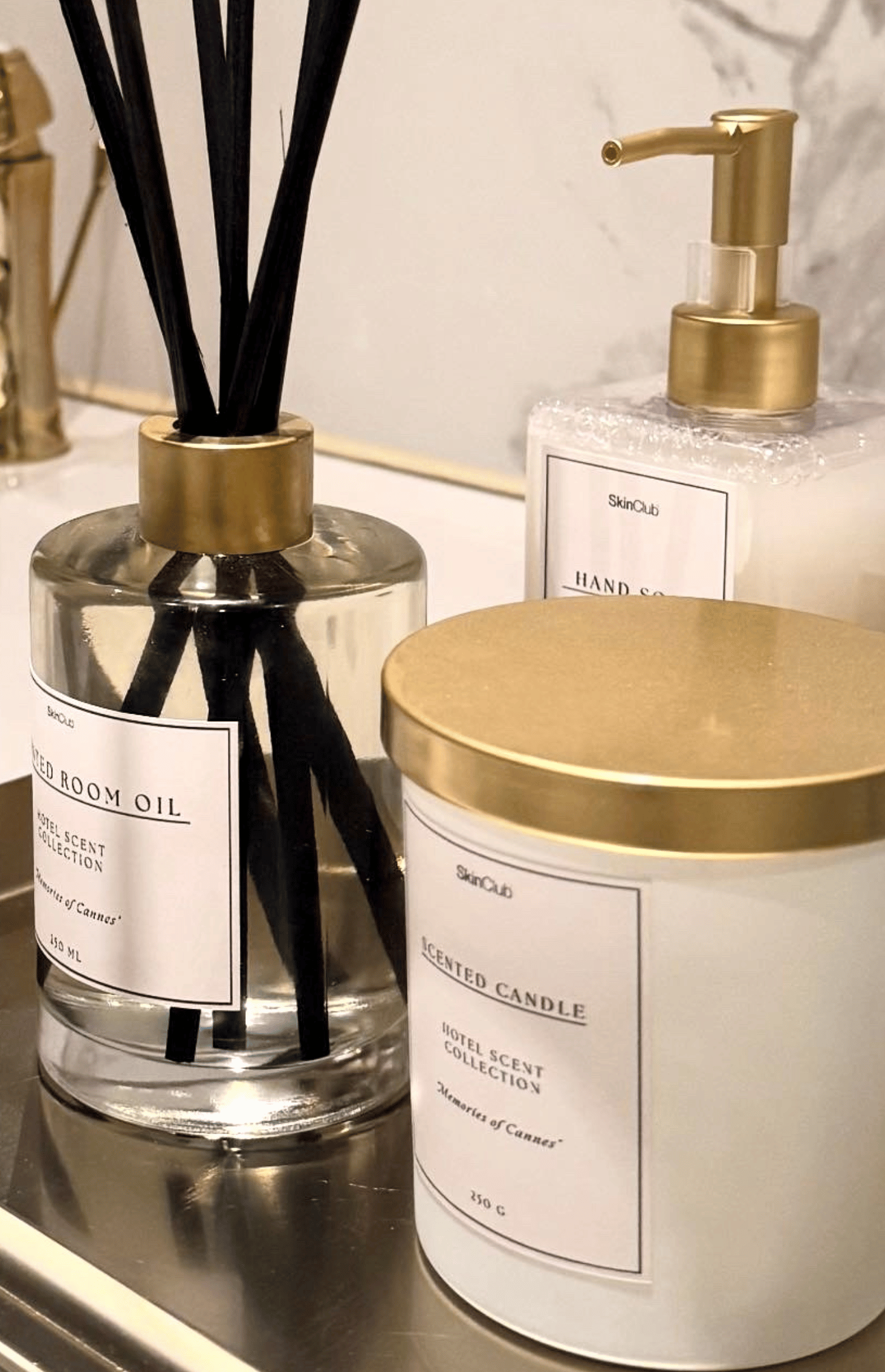 Forkæl dine sanser med Skinclub Essentials – Memories of Cannes – en serie af nøje udvalgte produkter skabt til at forvandle hverdagen til et øjeblik af velvære og raffineret ro. Serien består af fire luksuriøse produkter samt en elegant messingbakke, der tilsammen udgør den ultimative oplevelse af spa, renhed og diskret luksus.